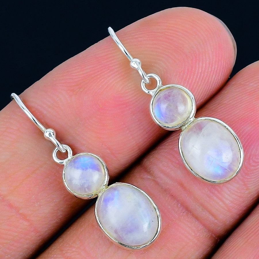 June Birth Natural Moonstone 925Ā SolidĀ Silver Dangling Handcrafted Hook Earrings