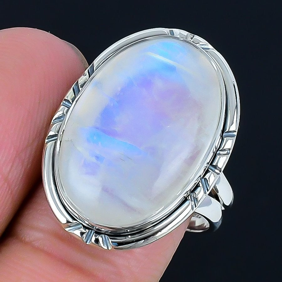 Rainbow Moonstone Stone 925Ā SolidĀ Silver Wife Cluster Unique Ring Jewelry Size 6