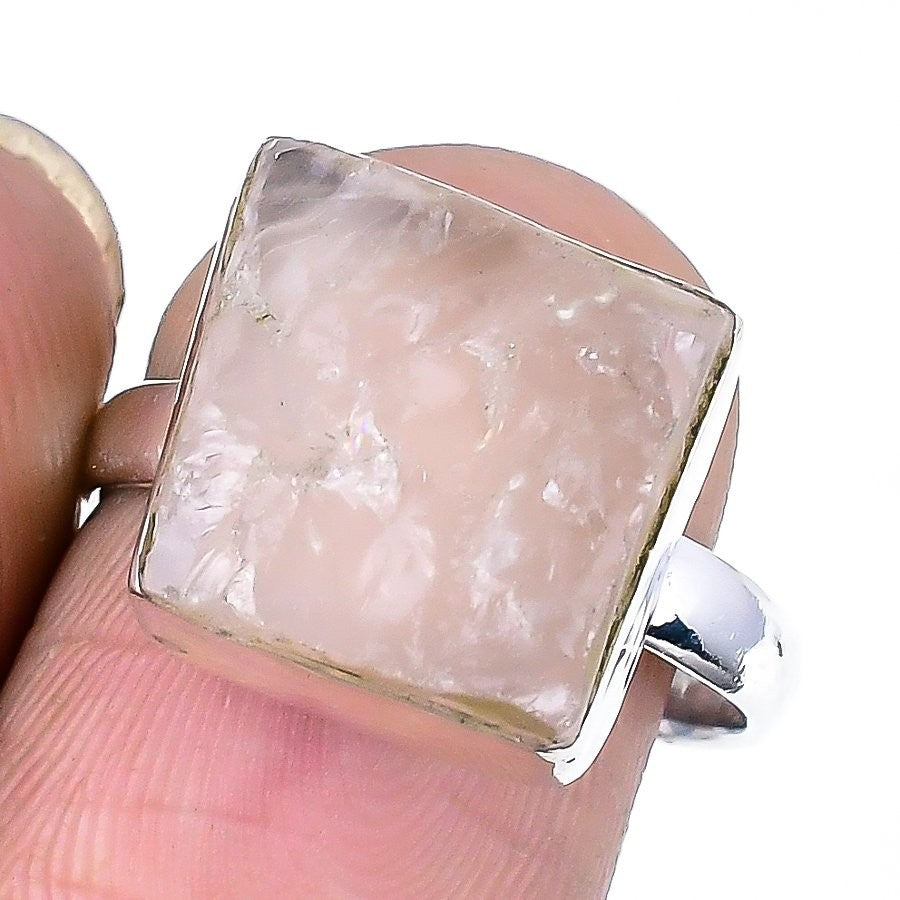 Natural Rose Quartz Druzy 925 Sterling Silver Daughter Birthday Statement Ring