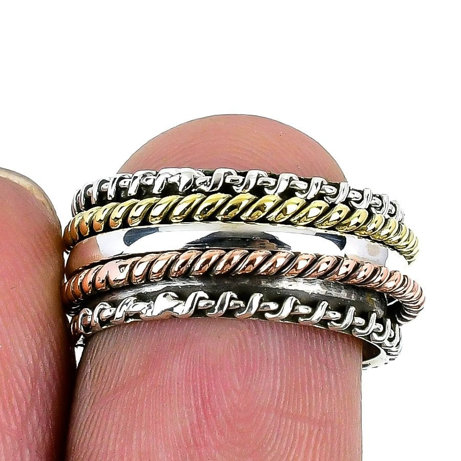 Meditation spinner Gemstone 925Ā SolidĀ Silver Statement Mother Trendy Ring US 6.5
