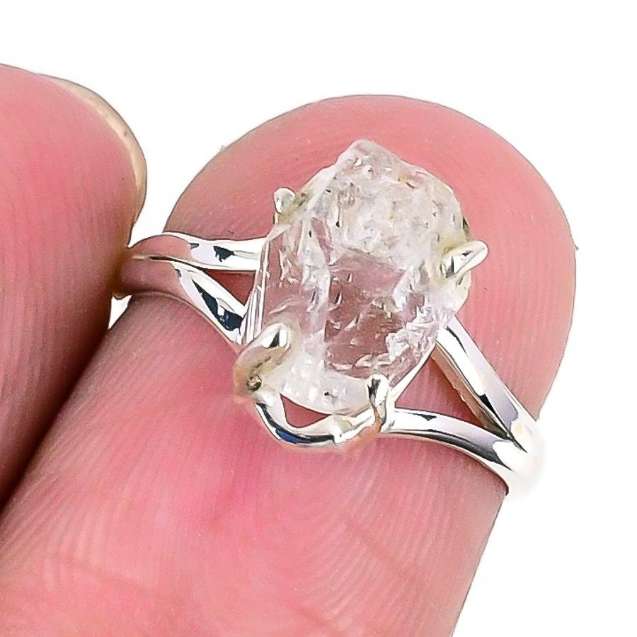 Herkimer Diamond Stone Solid Sterling Silver Trendy Cluster Ring Jewelry Size 6