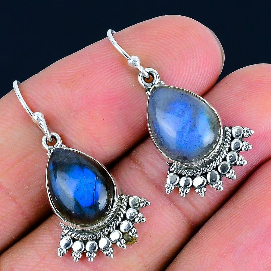 Labradorite Gemstone Solid Sterling Silver New Drop Anniversary Earrings Jewelry