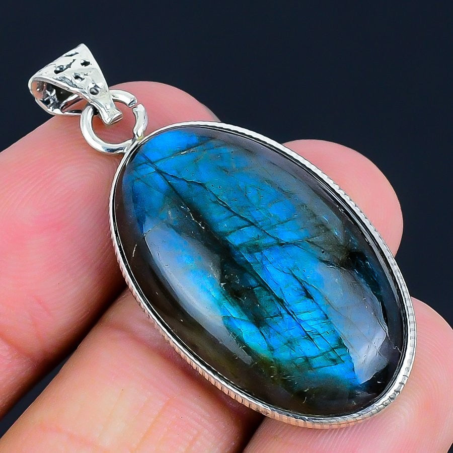 Third Eye Chakra Labradorite Stone 925Ā SolidĀ Silver Bezel Boho Pendant Jewelry