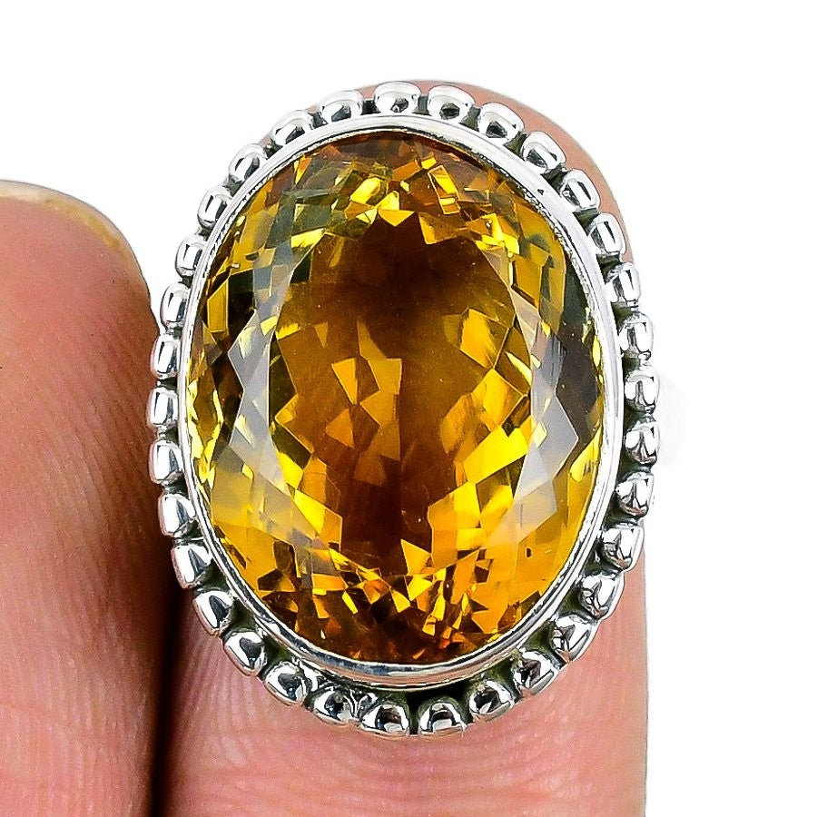 Citrine Gemstone 925 Silver Statement Wedding Daughter Bezel Ring Jewelry US 6
