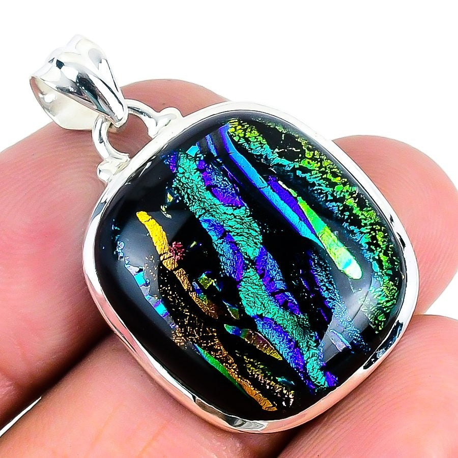 Natural Mexican Dico Glass Solid Sterling Silver New Bezel Daughter Gift Pendant
