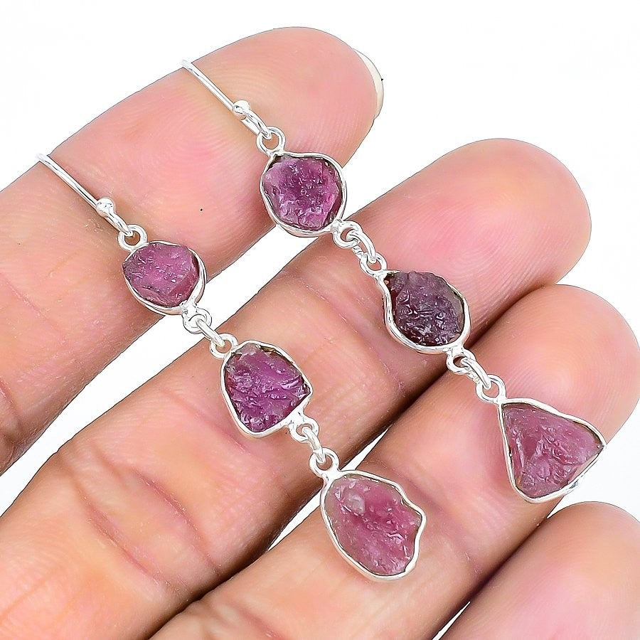 Pink Tourmaline Druzy Stone Dangle Hook Earrings Jewelry Solid Sterling Silver