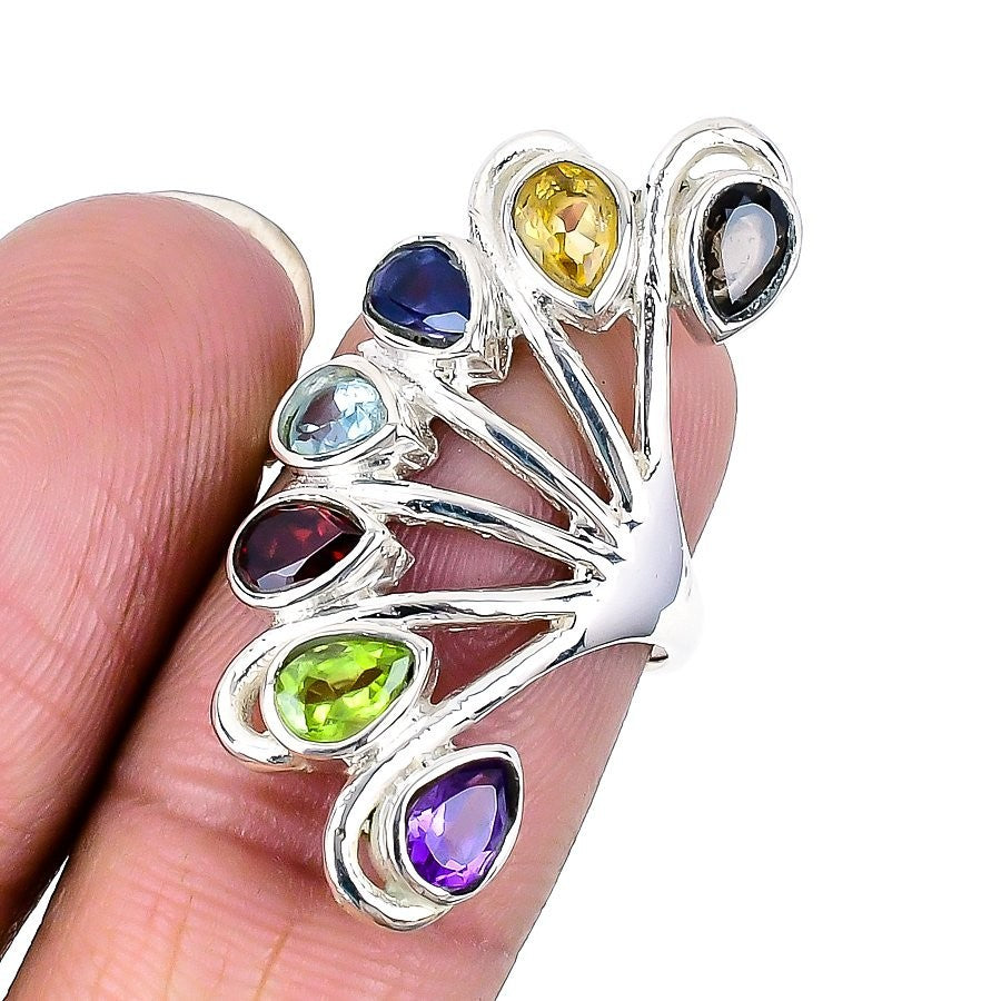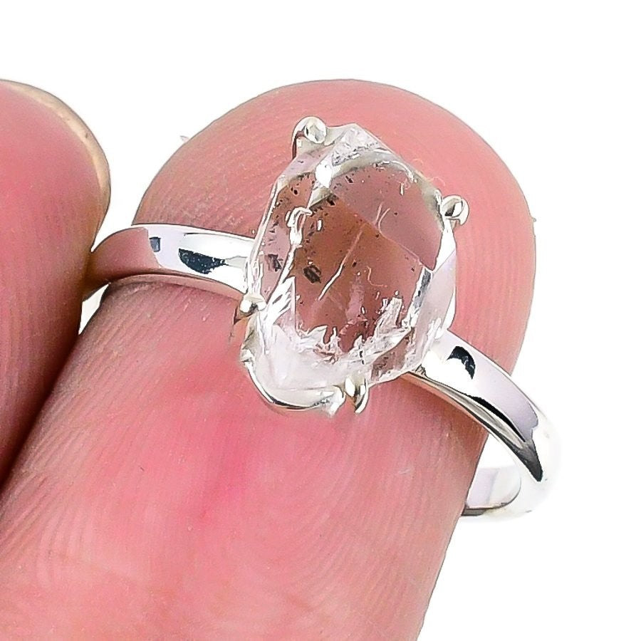 Crown Chakra Herkimer Diamond Gemstone Solid Silver Trendy Cluster Ring Size 8