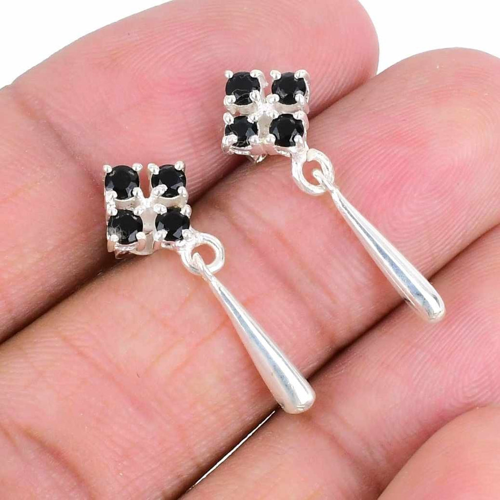 Black Onyx Stone Anniversary Wedding Drop Dangle Earrings 925 Sterling Silver