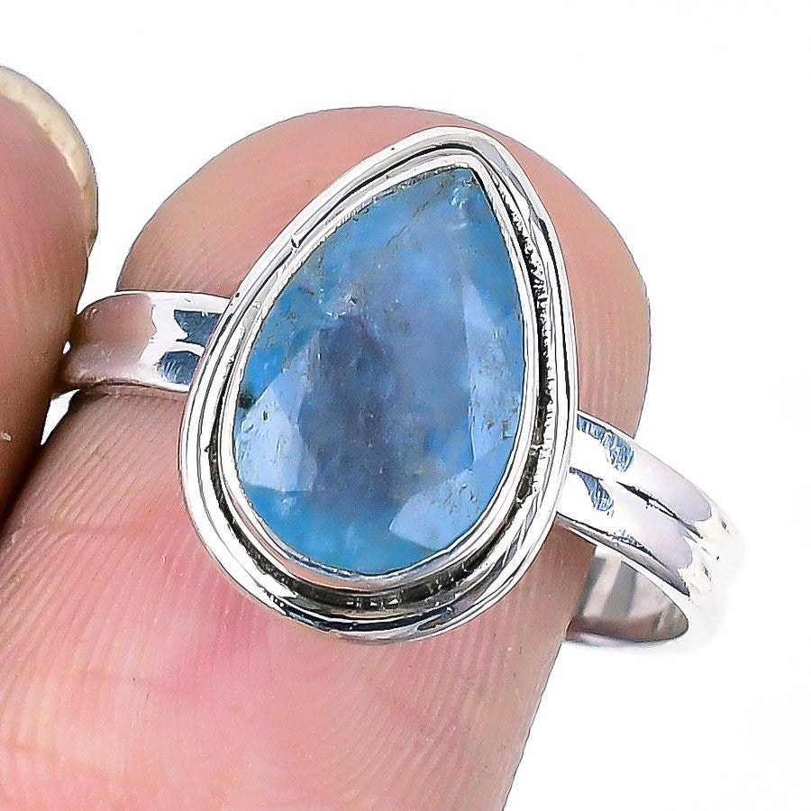 Aquamarine Faceted Stone 925Ā SolidĀ Silver Statement Daughter Gift Ring Size 10