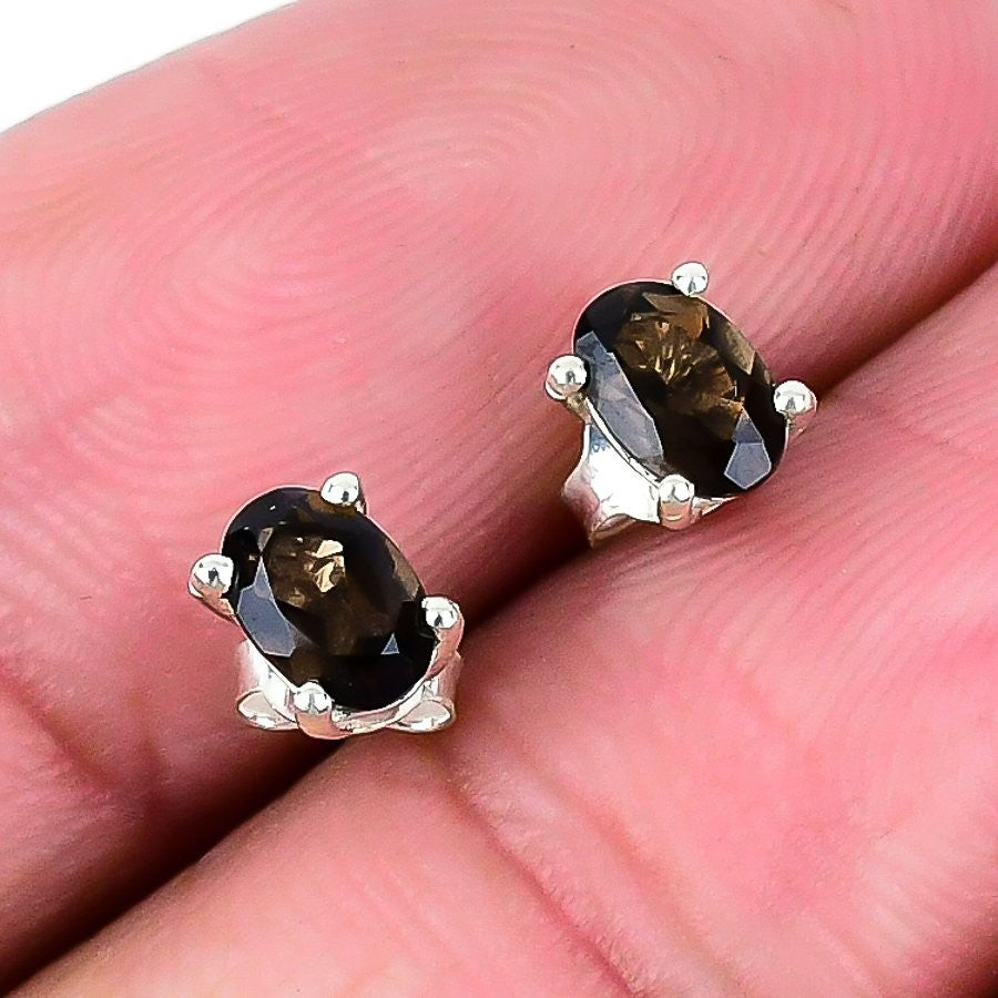 Smoky Topaz Gemstone Sterling Silver Stud Art Deco Anniversary Mother Earrings