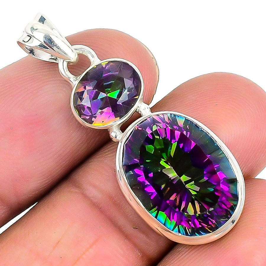 Mystic Topaz Stone Unique Channel Set Wife Pendant Jewelry 925 Sterling Silver