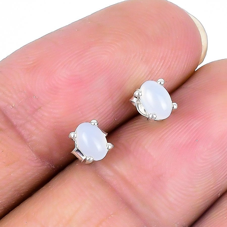Rainbow Moonstone Gemstone 925Ā SolidĀ Silver Stud Post Daughter Gift New Earrings