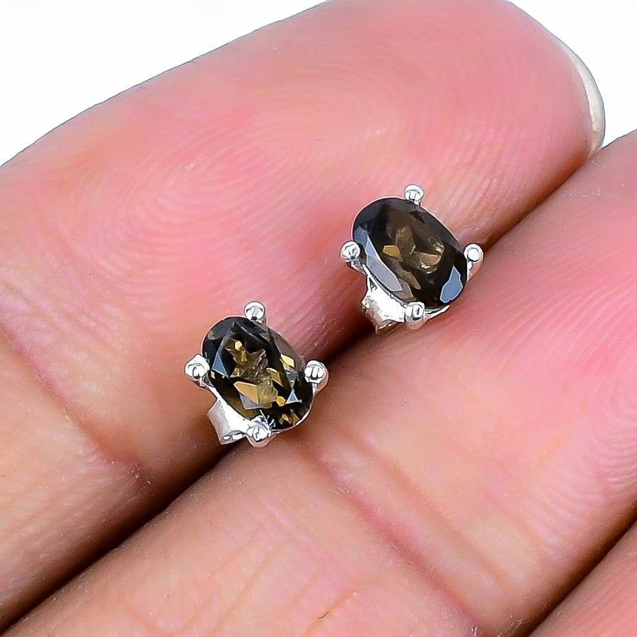 Smoky Topaz Stone Handmade Engagement Stud Daughters Day Earrings Solid Silver