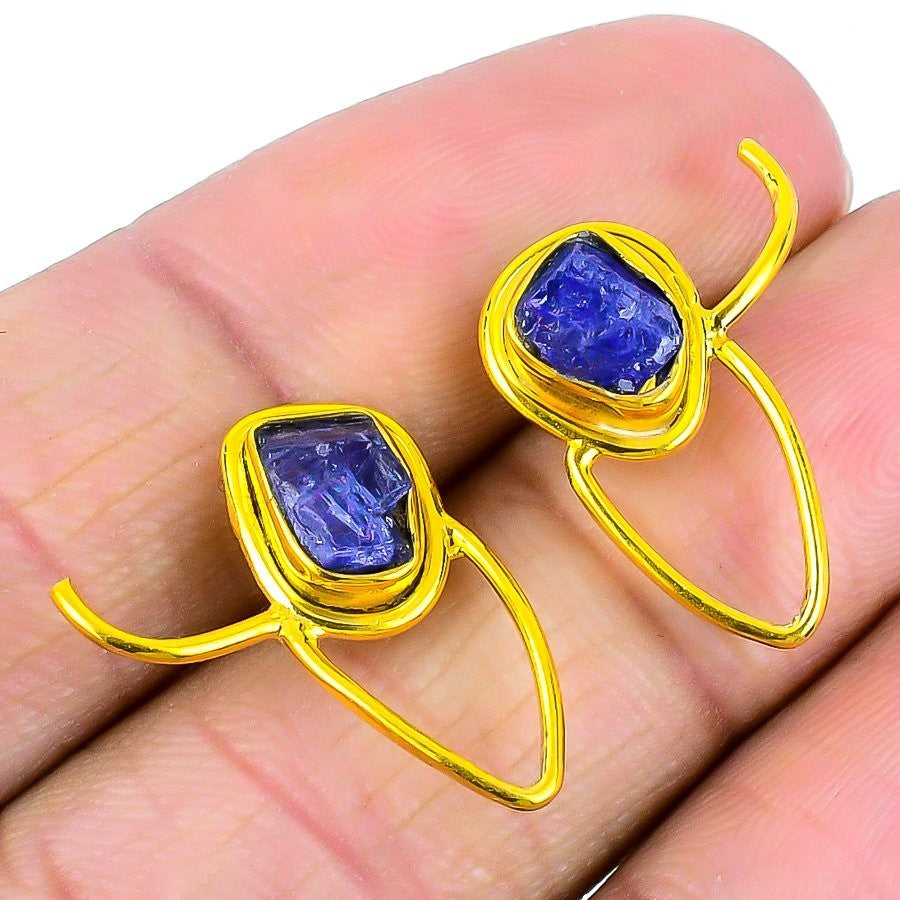 Tanzanite Rough Gemstone Solid Silver Drop Dangle Hook Daughter Wedding Earrings
