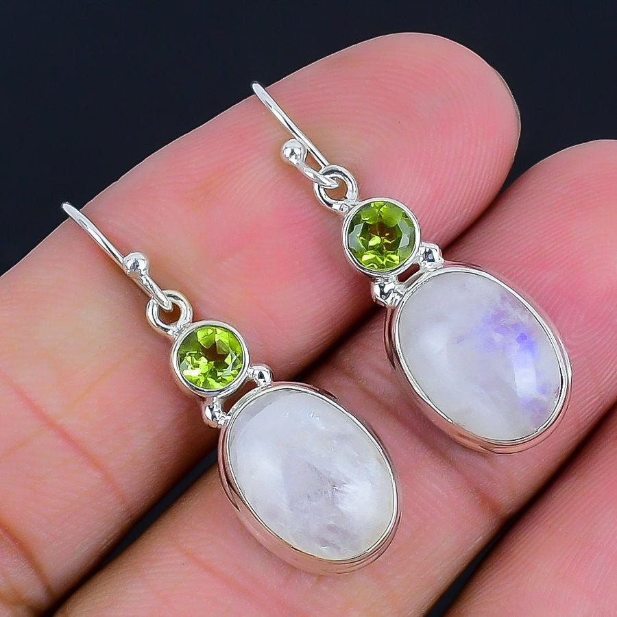 Moonstone Stone 925 Silver Bezel Hook Engagement June Dangling Birthday Earrings