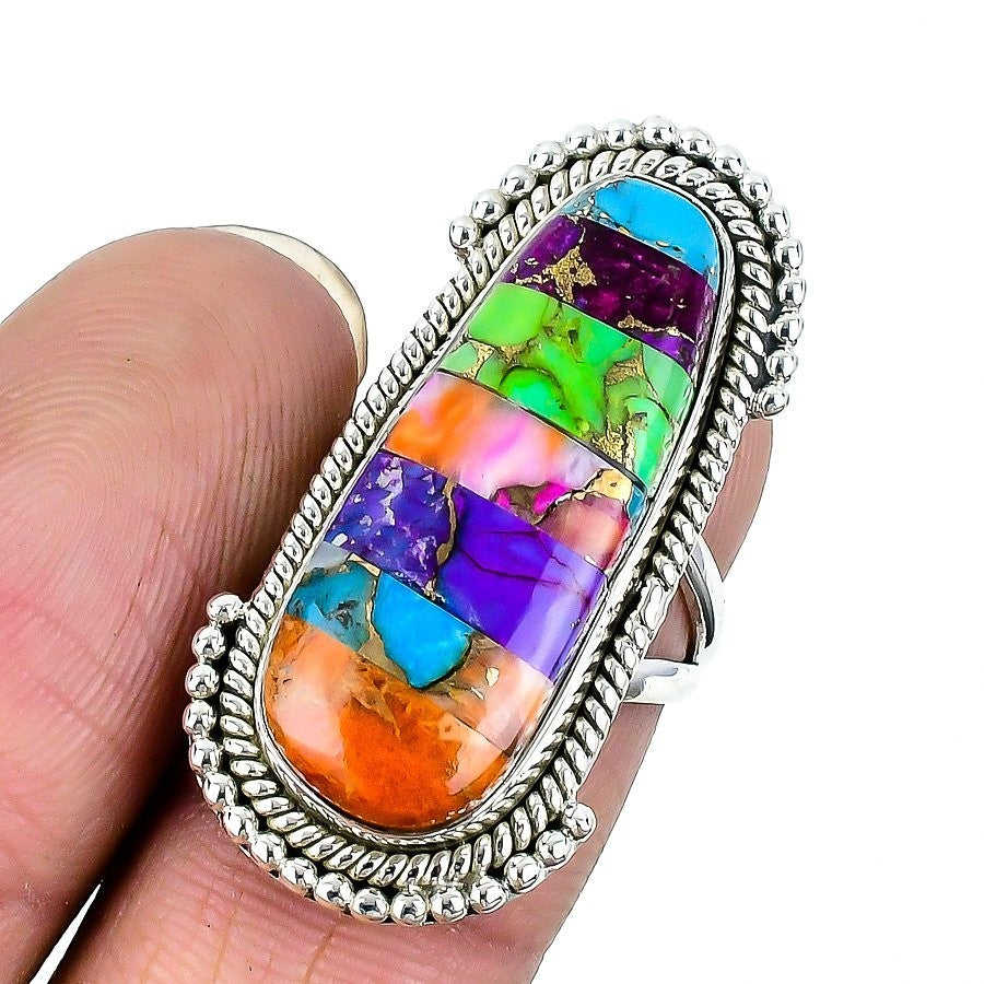 Spiny Oyster Matrix Gemstone Ethnic Statement Elegant Ring 925Ā SolidĀ Silver US 6