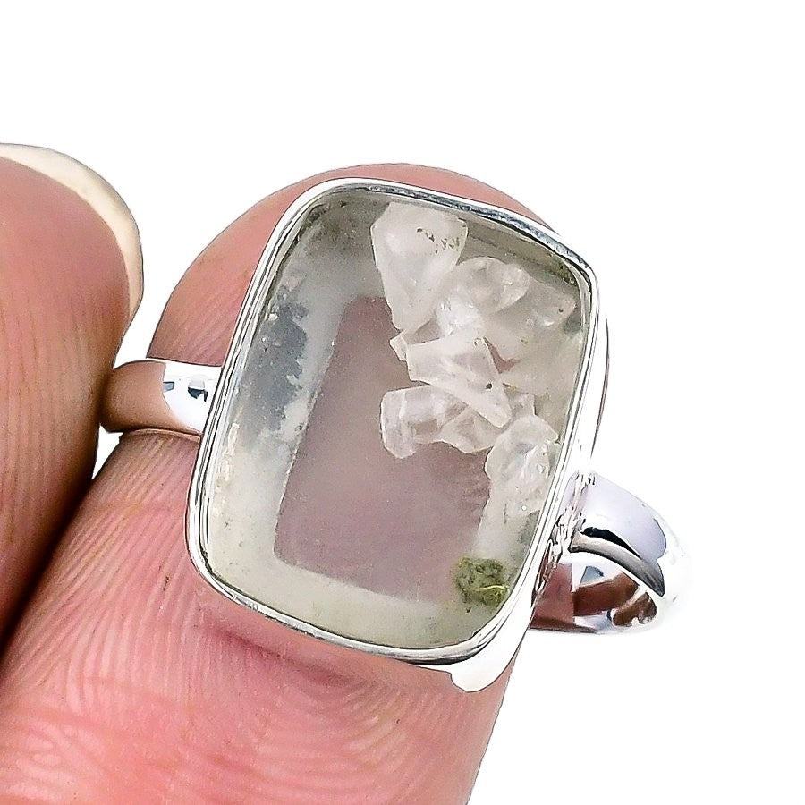 Natural Green Amethyst Crystal 925Ā SolidĀ Silver Statement Mother Ring Jewelry