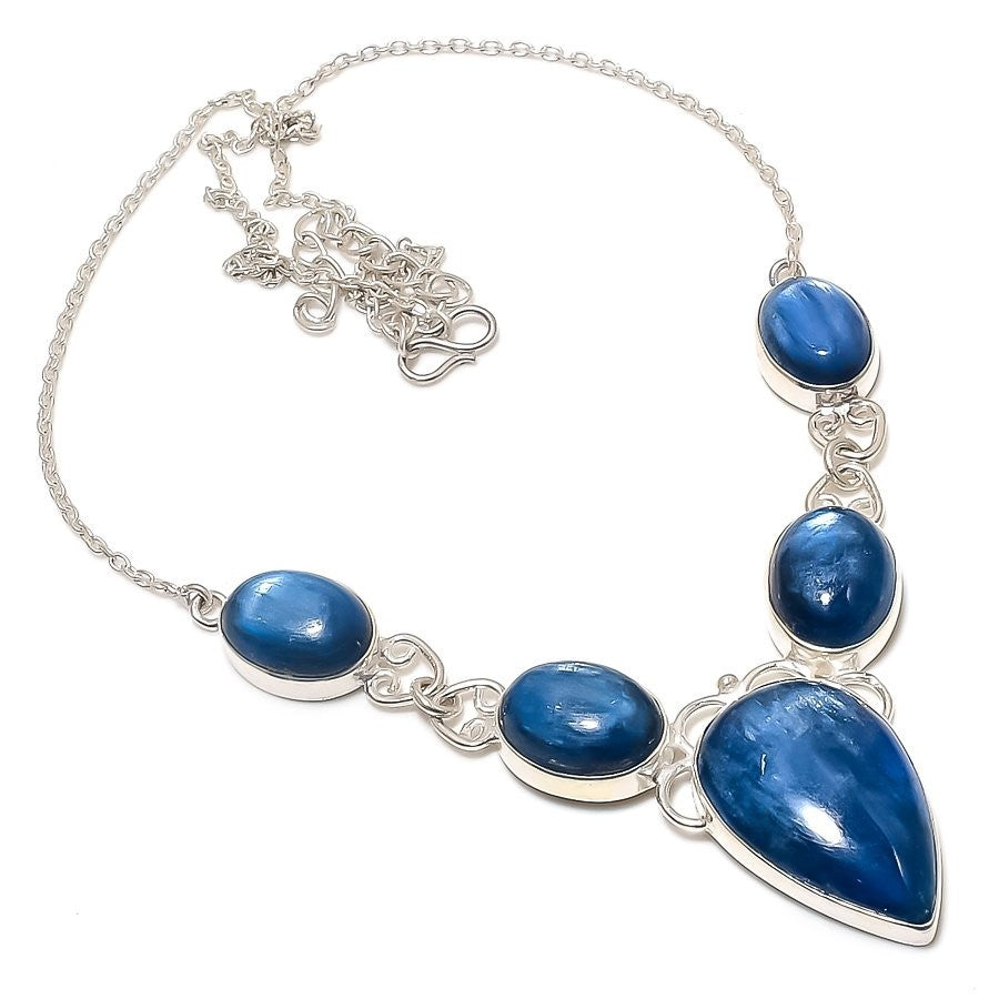 Blue Kyanite Gemstone 925Ā SolidĀ Silver Artisan Chain Engagement Necklace Jewelry