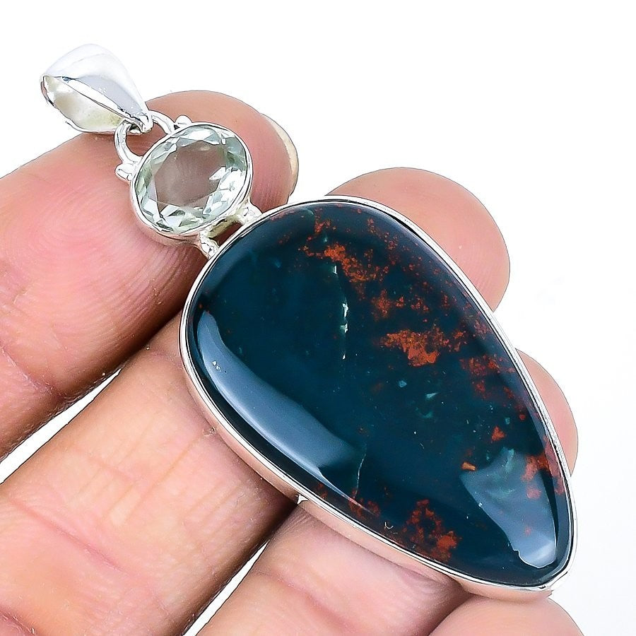 Daughters Day Sale Bloodstone Stone Engagement Ethnic Wedding Pendant 925 Silver