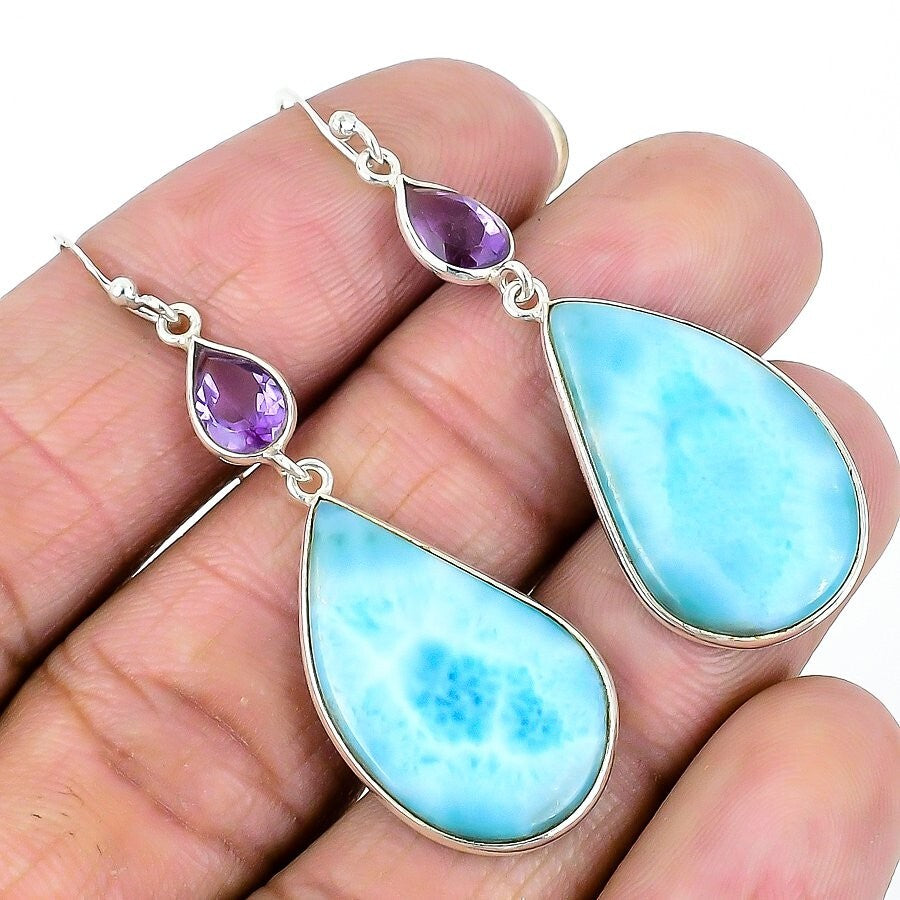 Republic Larimar Stone 925 Solid Silver New Dangle Memorial Day Earrings Jewelry