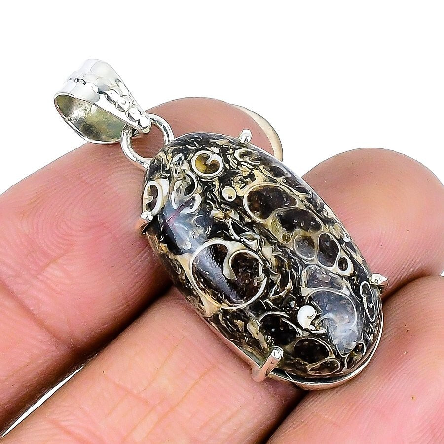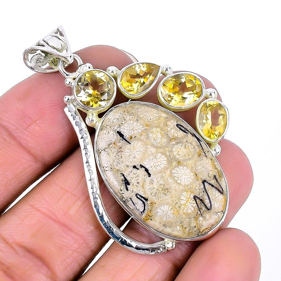 Fossil Coral Stone 925 Solid Silver Engagement Handmade Sister Ethnic Pendant