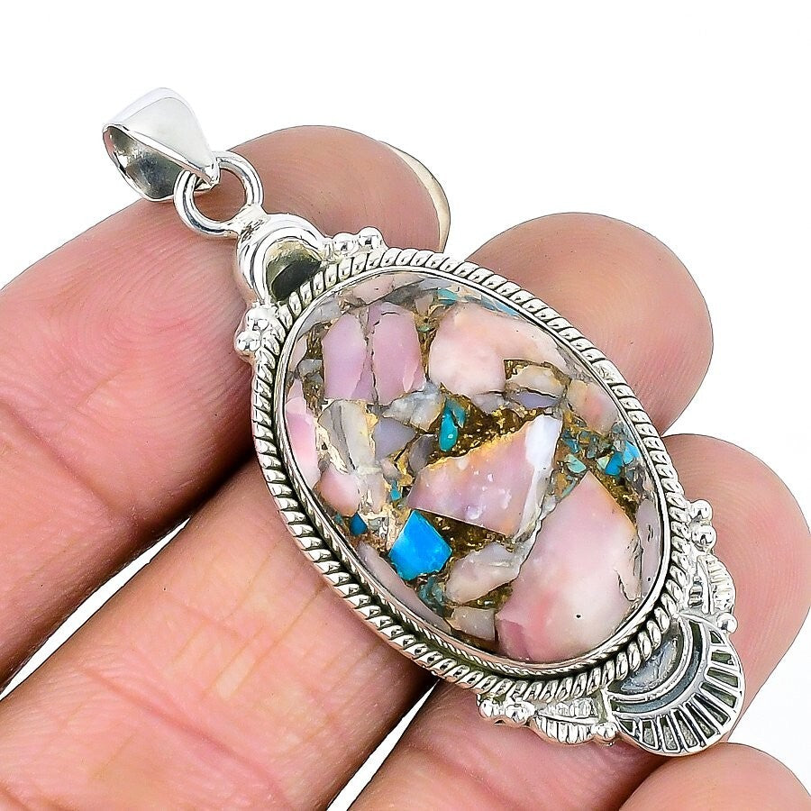 Copper Pink Opal Composite Gemstone Solid Sterling Silver Ethnic Pendant Jewelry