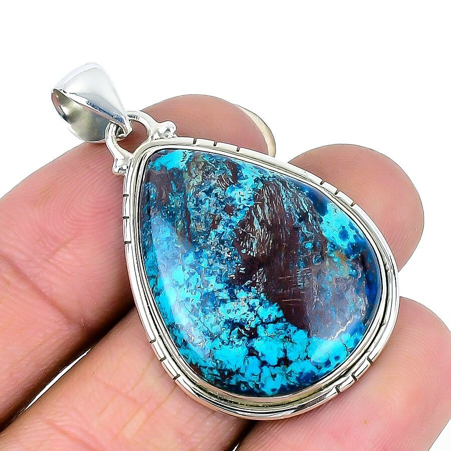 Throat Chakra Natural Chrysocolla Solid Sterling Silver Wife New Pendant Jewelry