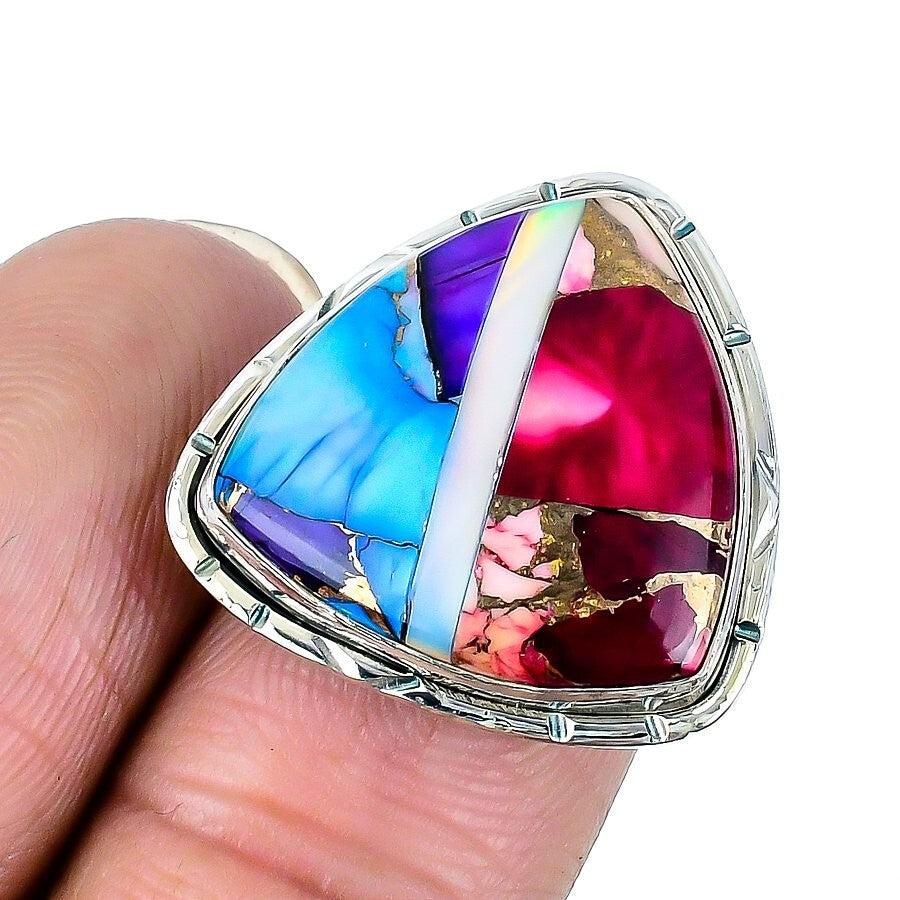 Spiny Oyster Gemstone 925 Silver Unique Birthday Statement Mother Ring Size 7.5