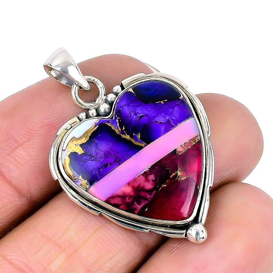 Spiny Oyster Heart Matrix Gemstone 925 Sterling Silver Sister Elegant Pendant