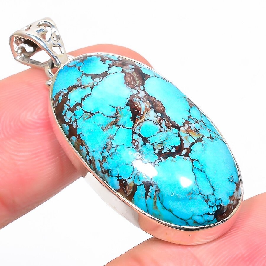 Tibetan Turquoise Gemstone Birthday Artisan Wedding Pendant Jewelry Solid Silver