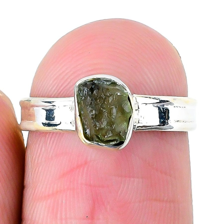 Moldavite Stone 925 Sterling Silver Cluster Third Eye Chakra Ring Jewelry Size 6