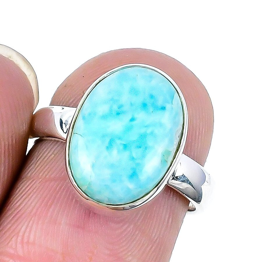 Natural Republic Larimar Solid Silver Anniversary Statement Ring Jewelry Size 7