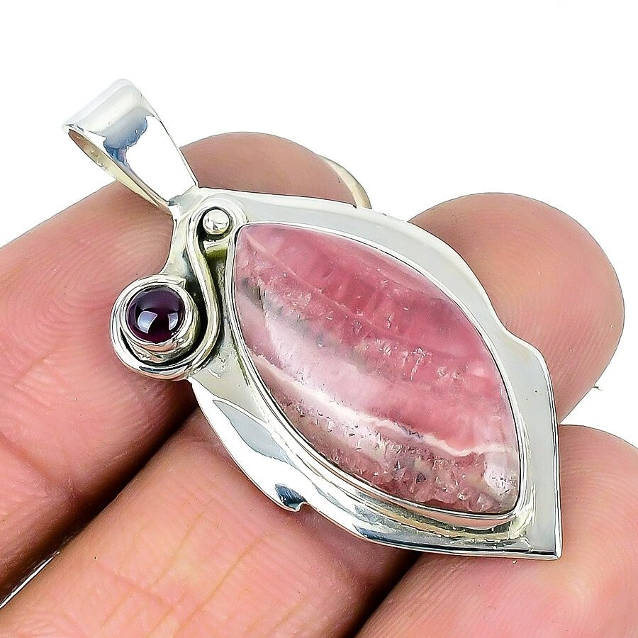 Rhodochrosite Gemstone 925 Silver Trendy Heart Chakra Engagement Wedding Pendant