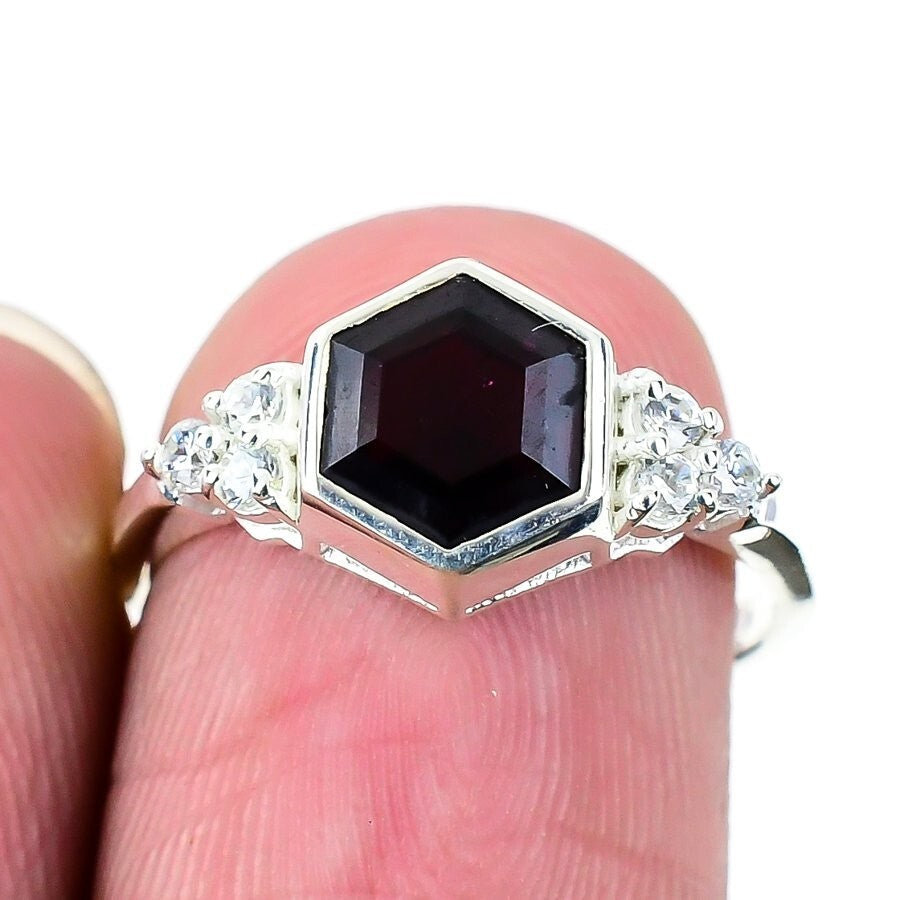 January Natural Mozambique Garnet Solid Silver Ethnic Boho Statement Ring US 7