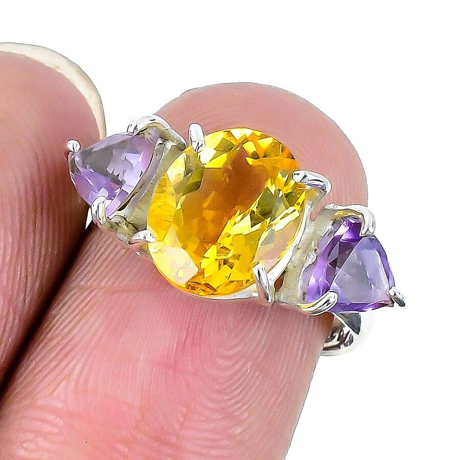 Natural Citrine Faceted 925 Sterling Silver Birthday Wife Statement Ring Jewelry