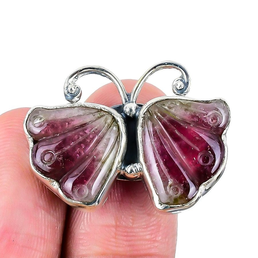 Natural Watermelon Tourmaline 925Ā SolidĀ Silver Statement Elegant Ring Jewelry