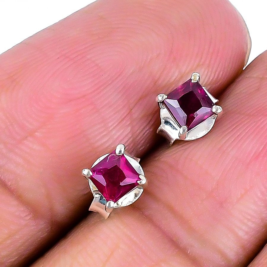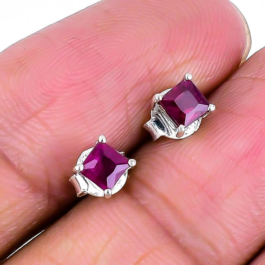 Kashmir Red Ruby Stone Solid Silver Stud Best Daughters Gift Earrings Jewelry