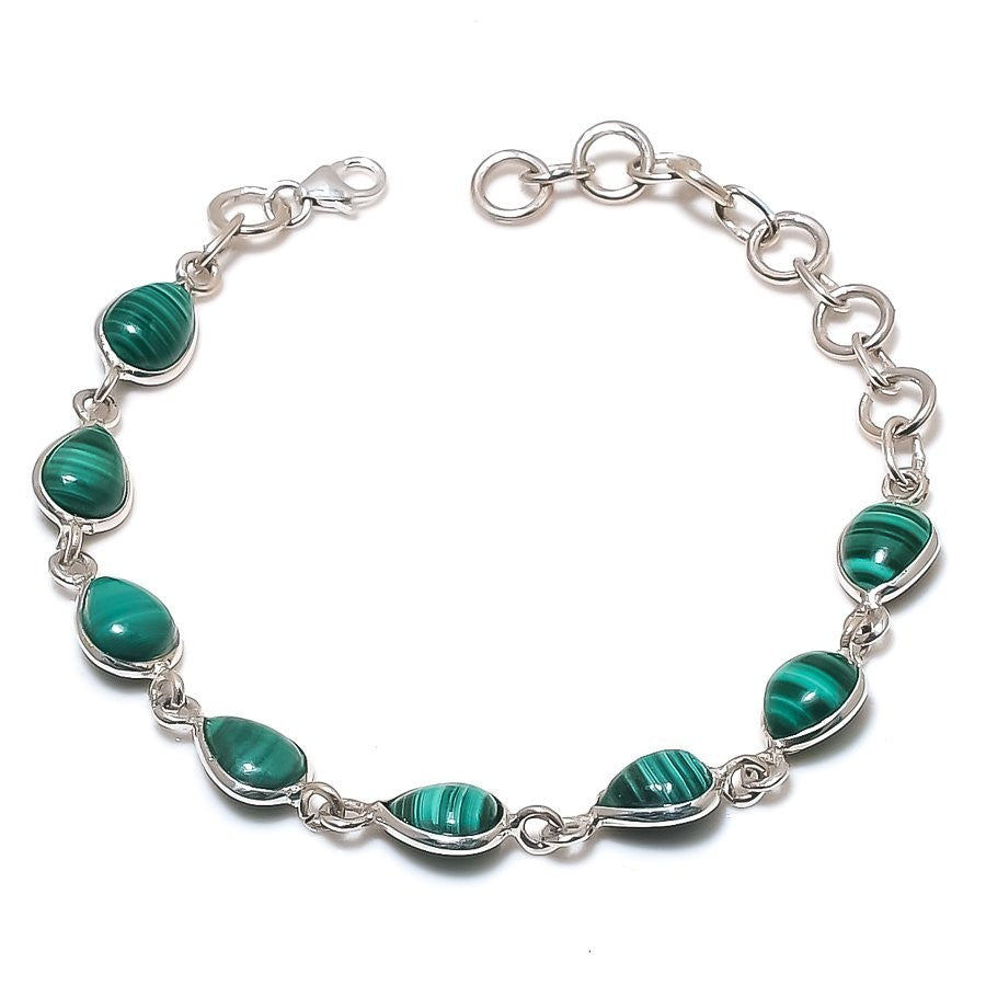 Heart Chakra Natural Malachite Solid Sterling Silver Chain Wife Necklace Jewelry