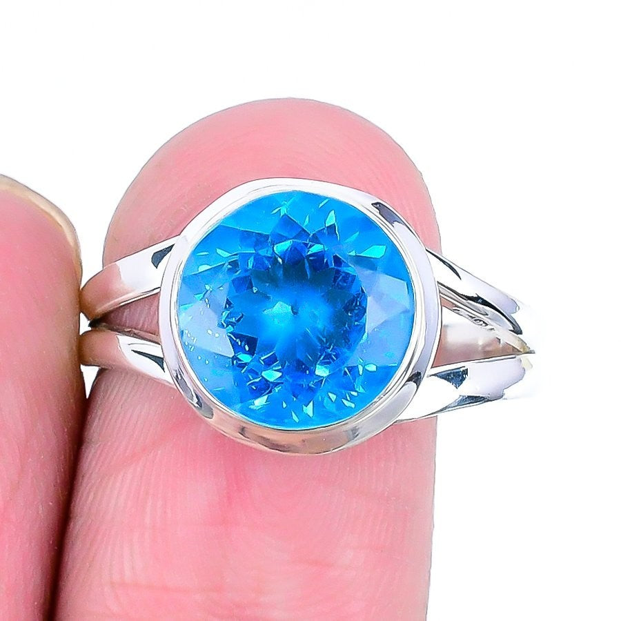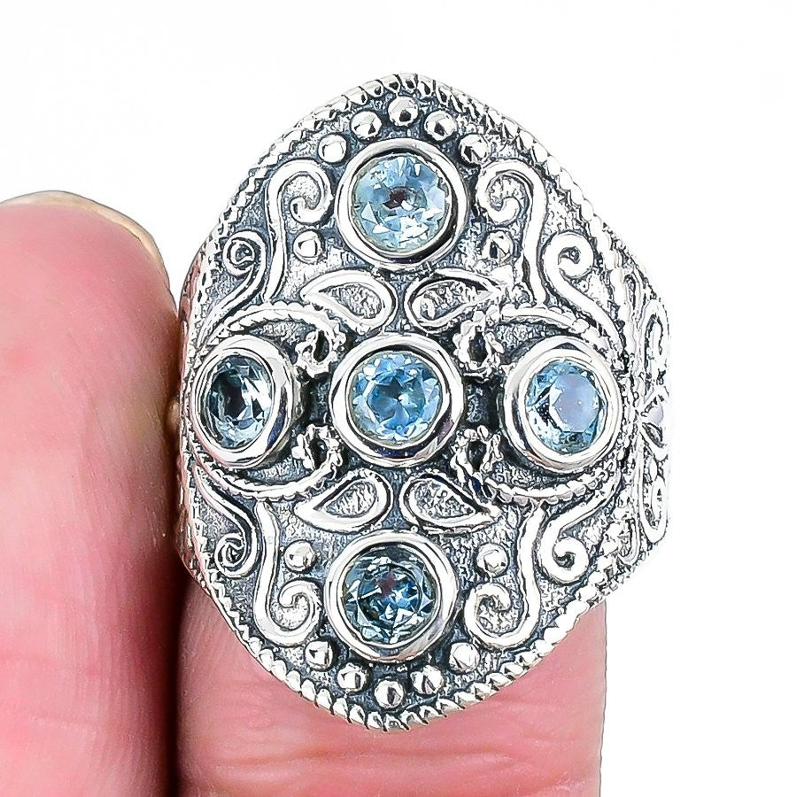 Natural Swiss Blue Topaz 925 Sterling Silver Daughter Unique Cluster Ring Size 8