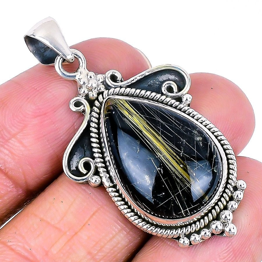 Golden Rutile onyx backed Gemstone Solid Silver Daughter Gift Pendant Jewelry