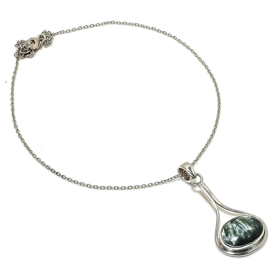 Seraphinite Stone 925Ā SolidĀ Silver Hook Chain Daughter Gift Handmade Necklace