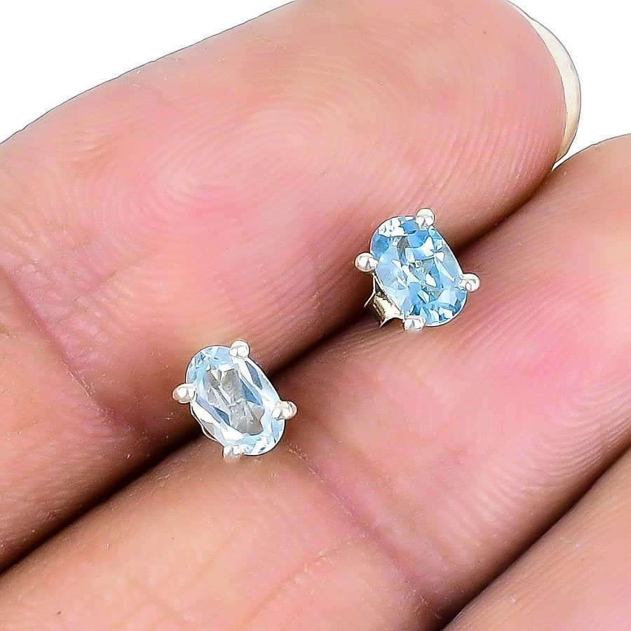Aqua Topaz Stone Sterling Silver New Stud Daughters Day Wedding Earrings Jewelry