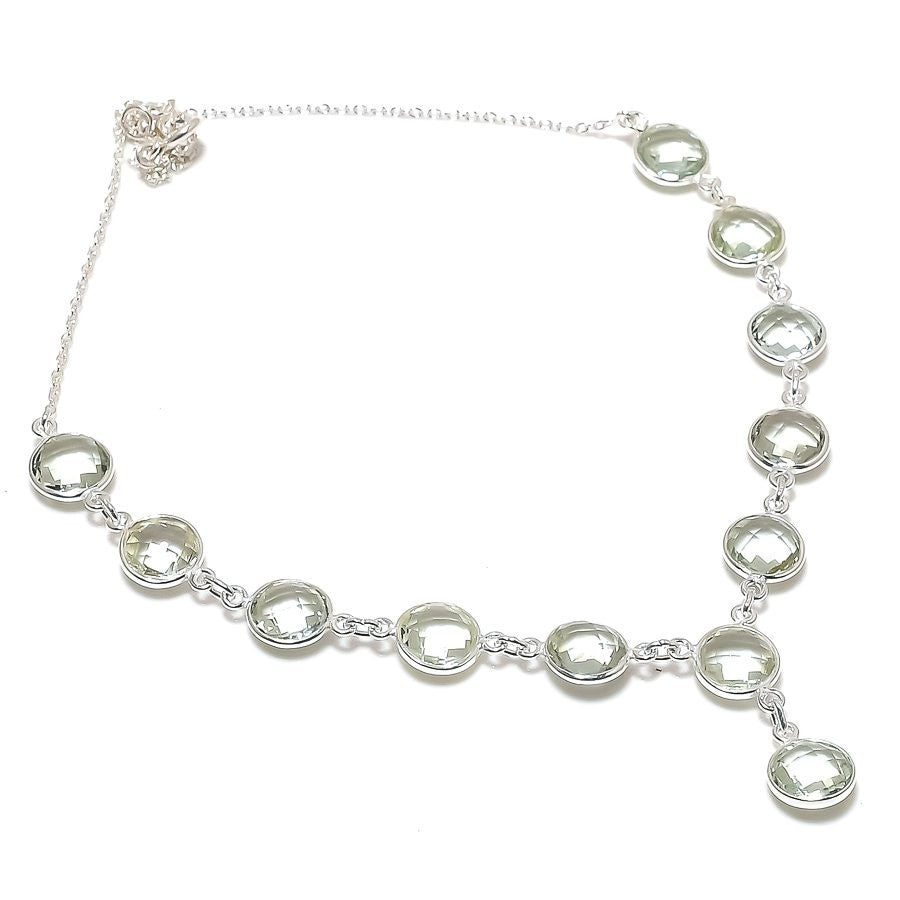 Natural Crystal Quartz Faceted 925 Sterling Silver Handmade Chain Hook Necklace