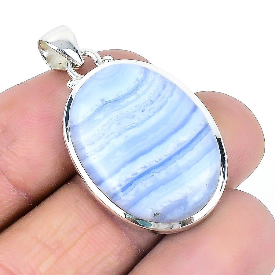 Third Eye Chakra Blue Lace Agate Gemstone Solid Silver Daughter Birthday Pendant