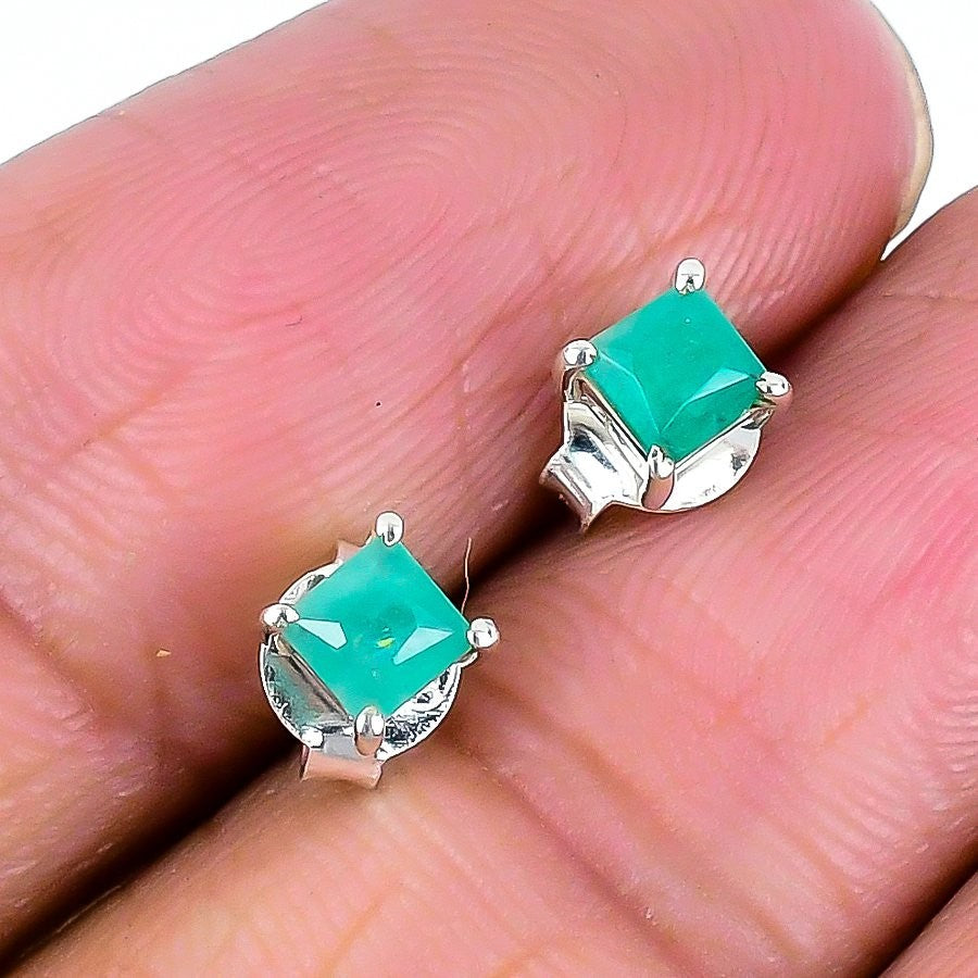 Natural Emerald Faceted 925Ā SolidĀ Silver Wedding Stud Clip On Artisan Earrings
