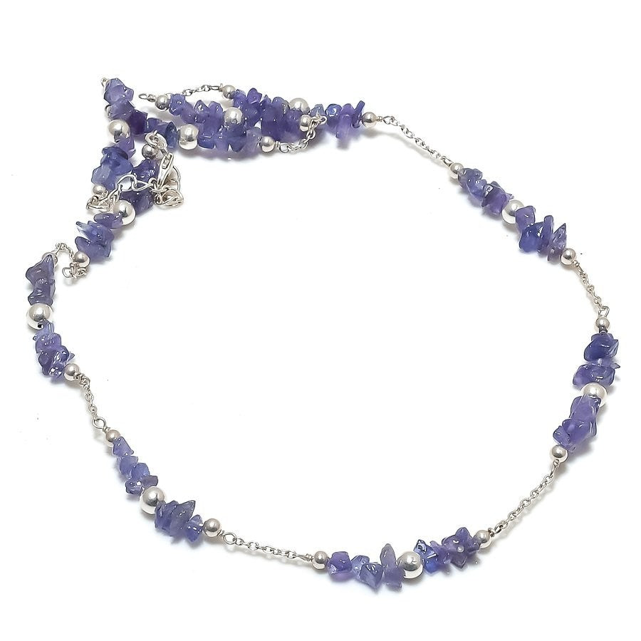 Tanzanite Quartz Druzy Gemstone Solid Silver Chain Hook Sister Necklace Jewelry