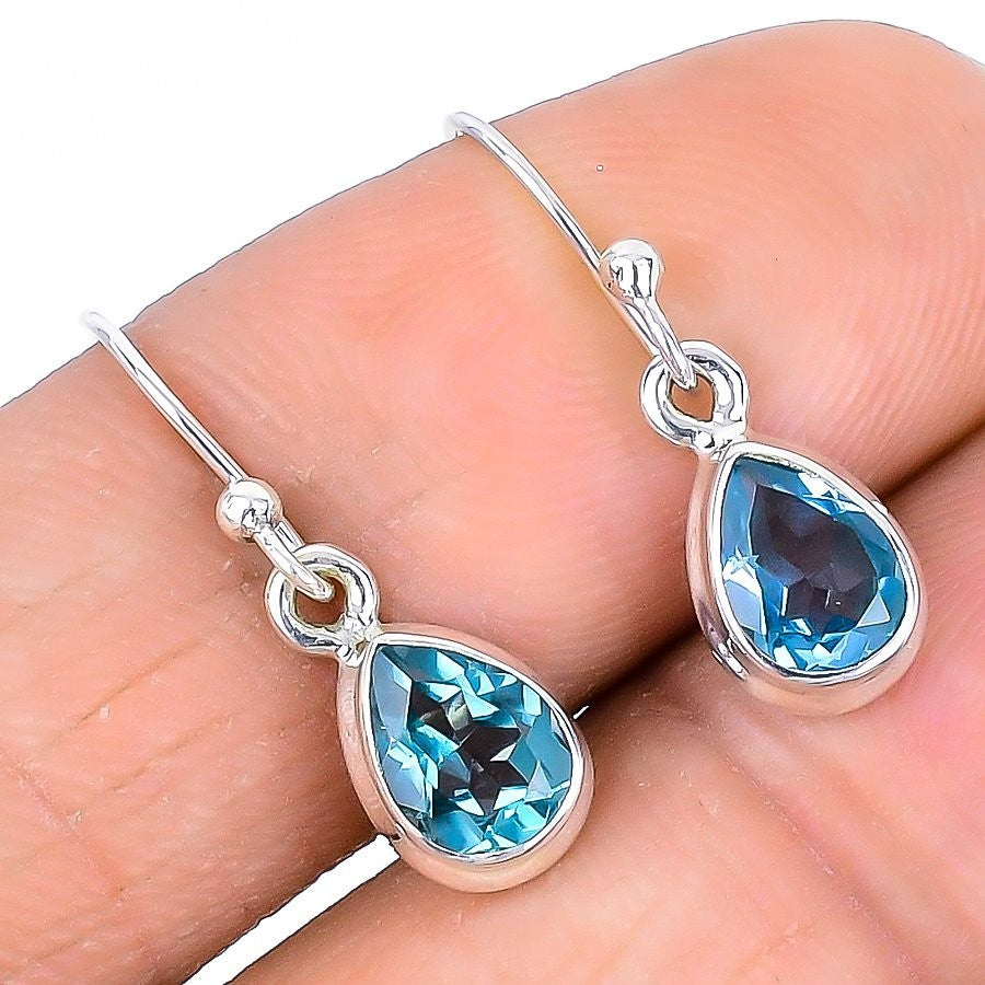 Swiss Blue Topaz Gemstone Solid Sterling Silver Dangle Drop Birthday Earrings