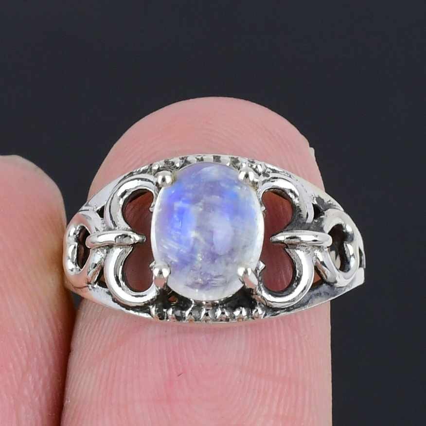 Rainbow Moonstone Stone Solid Silver Sister Wedding Art Deco Cluster Ring Size 6