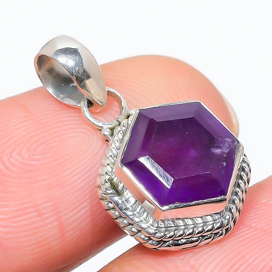 Sage Amethyst Stone Solid Sterling Silver Engagement Handmade Sister New Pendant