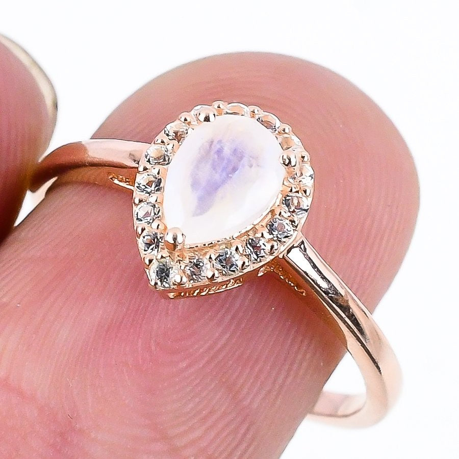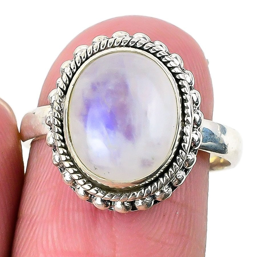 Natural Rainbow Moonstone Sterling Silver Wedding Birthday Statement Ring US 6